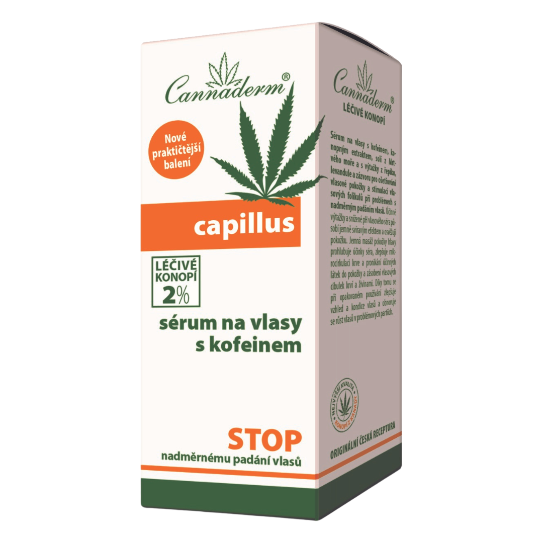 Ο ορός μαλλιών Capilus Caffeine περιέχει πρωτεΐνη κάνναβης, αλάτι της νεκρής θάλασσας, εκχύλισμα μαστιγίου, λεβάντα και τζίντζερ. Προορίζεται για τη θεραπεία του τριχωτού της κεφαλής καθώς διεγείρει τα θυλάκια για την τριχόπτωση. Τα αποτελεσματικά εκχυλίσματα και το χαμηλό pH του ορού έχουν αναζωογονητική δράση στο δέρμα και βοηθούν στο κλείσιμο των ωοθυλακίων. Το απαλό μασάζ στο τριχωτό της κεφαλής βαθαίνει την επίδραση του ορού. Βελτιώνει τη μικροκυκλοφορία του αίματος και τη διείσδυση των δραστικών ουσιών στο τριχωτό της κεφαλής και οι βολβοί των μαλλιών τροφοδοτούνται με αίμα και θρεπτικά συστατικά. Ως αποτέλεσμα, κατά τη χρήση του ορού, βελτιώνεται η εμφάνιση και η κατάσταση των μαλλιών, καθώς και η ανάπτυξη σε προβληματικές περιοχές.